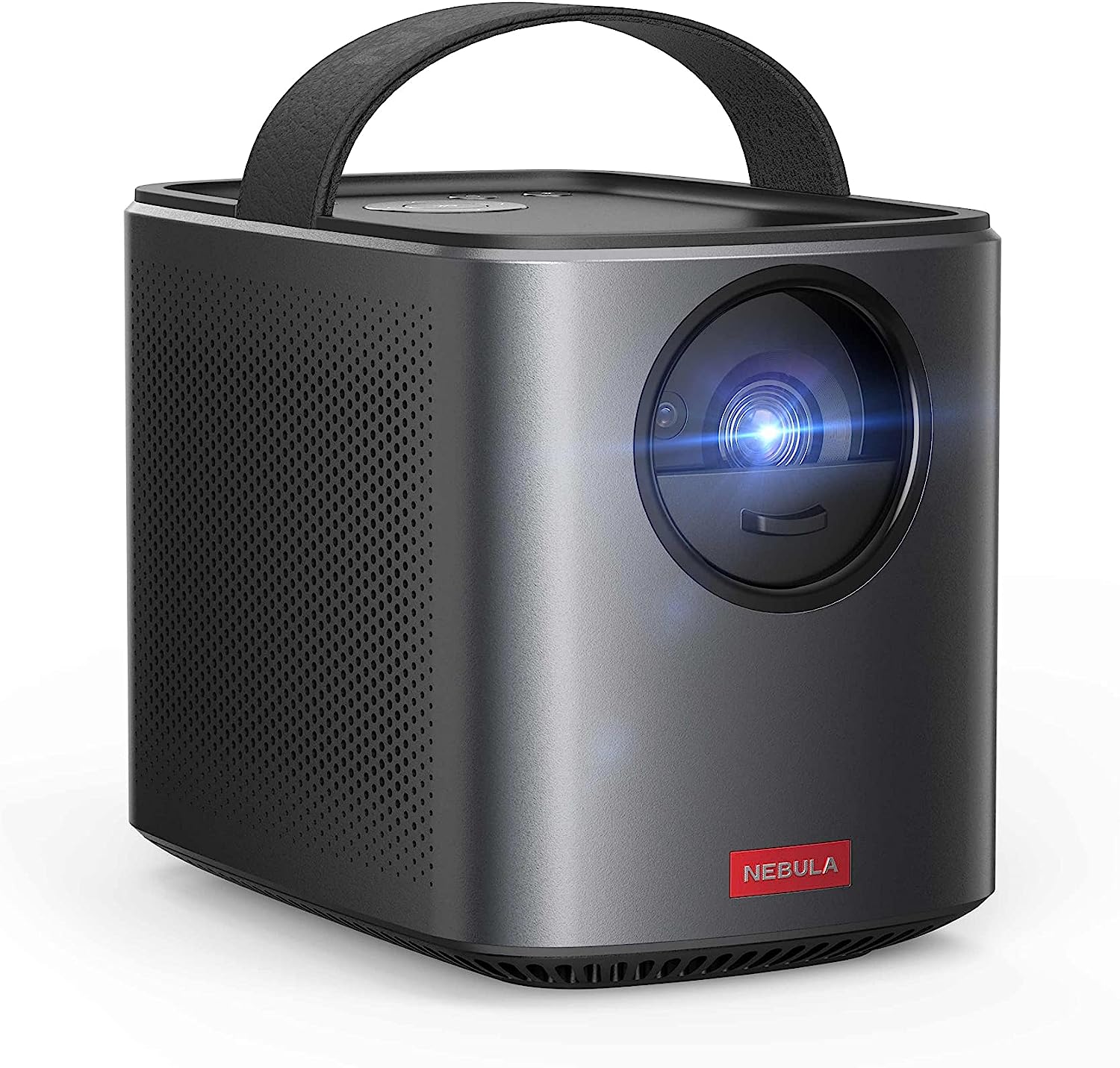 Easily watch videos at home or on the go with this portable projector. Connect with bluetooth, HDMI, or the projector's built-in apps. Includes 3-hour rechargeable battery, 500 ansi lumen projector, and two 10W speakers, all in one compact design.