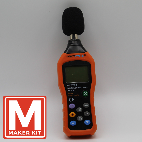Sound level meters are essential safety tools that show real-time sound levels in decibels (dB) on a screen. This particular meter is accurate to 1.5 dB at 1 kHz within the 30 to 130 dBA range.